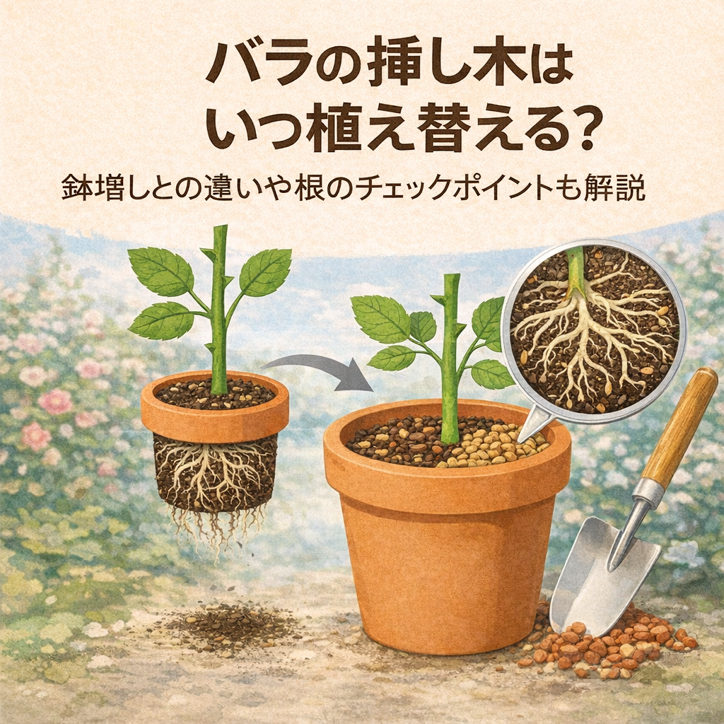 この記事では、バラの挿し木苗の「植え替えタイミング」や「鉢増しのやり方」について、初心者さんにもわかりやすくまとめました。